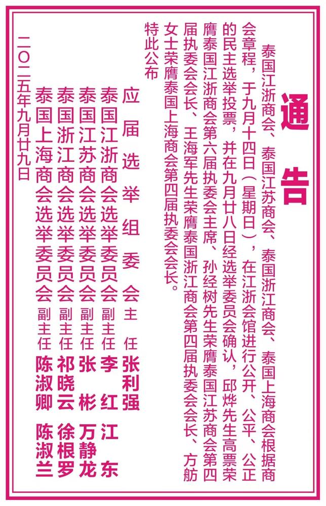 On September 29, 2025, the Jiangsu Chamber of Commerce in Thailand completed the election of the 4th Executive Committee. Mr. Sun Jingshu, the chairman of our company, was elected as the president with a high - vote. Mr. Sun Jingshu has always been committed to building an important bridge connecting the business resources between Thailand and Jiangsu, and has built a platform for communication and development for many Jiangsu - native entrepreneurs in Thailand. This time, Mr. Sun Jingshu's assumption of the presidency of the Jiangsu Chamber of Commerce in Thailand is expected to further integrate the resources and advantages of the chamber of commerce. Under his leadership, the Jiangsu Chamber of Commerce in Thailand will be more active in expanding business opportunities for Jiangsu - native entrepreneurs in Thailand, injecting new impetus into the development of economic and trade cooperation between China and Thailand, and promoting deeper - level cooperation and win - win results between the two countries in more fields. We sincerely congratulate Mr. Sun Jingshu on assuming the presidency. We look forward to the Jiangsu Chamber of Commerce in Thailand achieving more outstanding results in promoting cooperation in fields such as economic and trade exchanges between China and Thailand under the leadership of the new Executive Committee. |